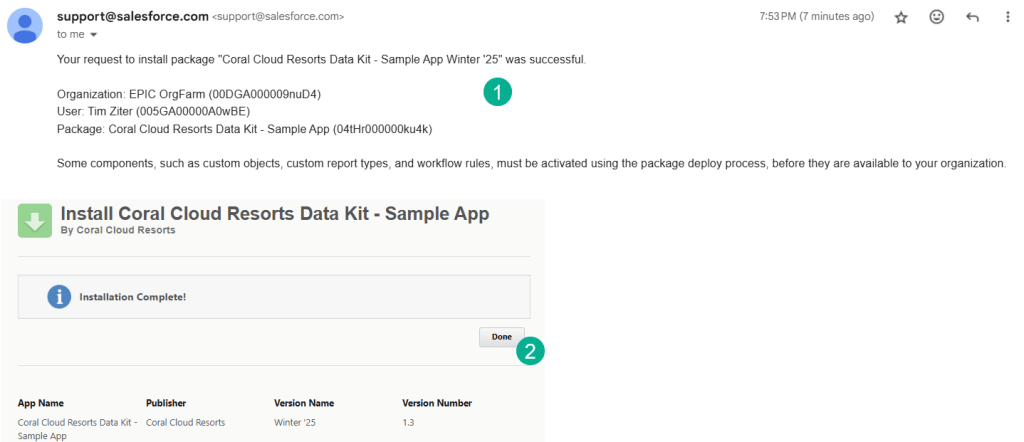 (1) You should receive a confirmation email that the install package was successful.