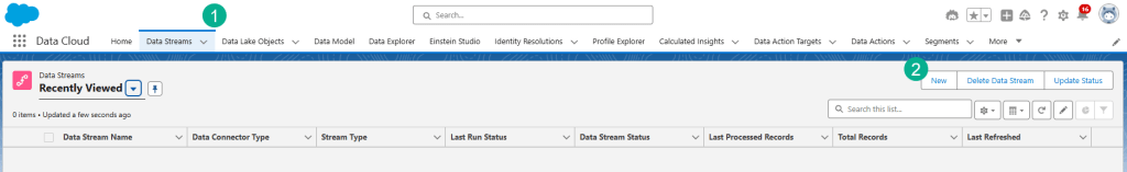 (1) In the tabs at the top click on Data Streams.