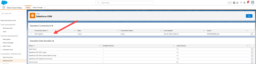 (1) Once setup your Set Up Your Data Cloud Instance will be checked and the Org Id will be displayed.